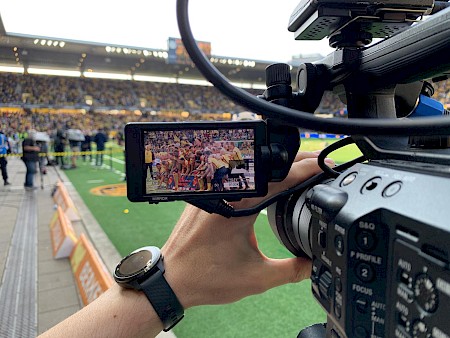 Neben der Live-Produktion im Stadion arbeiten wir auch bei der cross-medialen Nachberichterstattung mit: